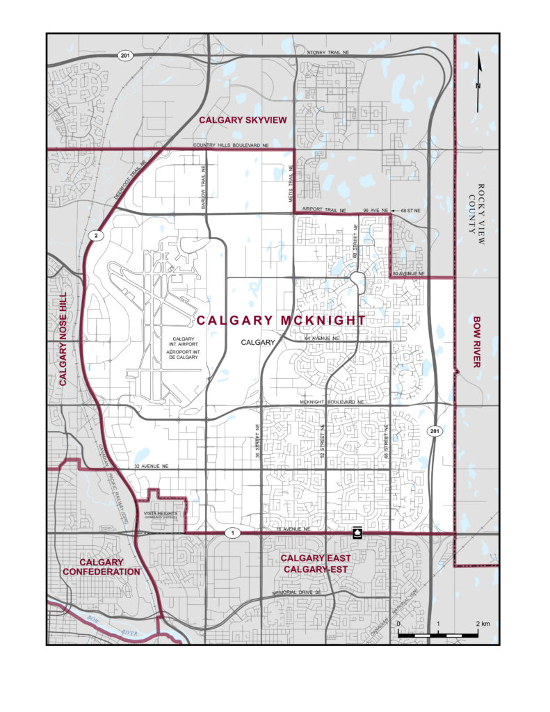 Consists of that part of the City of Calgary described as follows: commencing at the intersection of Deerfoot Trail NE (Highway 2) and Country Hills Boulevard NE; thence easterly along said boulevard to Métis Trail NE; thence southerly along said trail to Airport Trail NE; thence easterly along said trail and 96 Avenue NE to the northerly production of a pedestrian pathway (situated south of 68 Street NE); thence southerly along said production, said pathway and its intermittent productions to 80 Avenue NE; thence easterly along said avenue and its easterly production to the easterly limit of said city; thence generally southerly along said limit to 16 Avenue NE (Trans-Canada Highway); thence westerly along said avenue to the easterly limit of the Community District of Vista Heights; thence generally northerly and generally westerly along the easterly and northerly limits of said community district to Deerfoot Trail NE (Highway 2); thence generally northerly along said trail to the point of commencement.